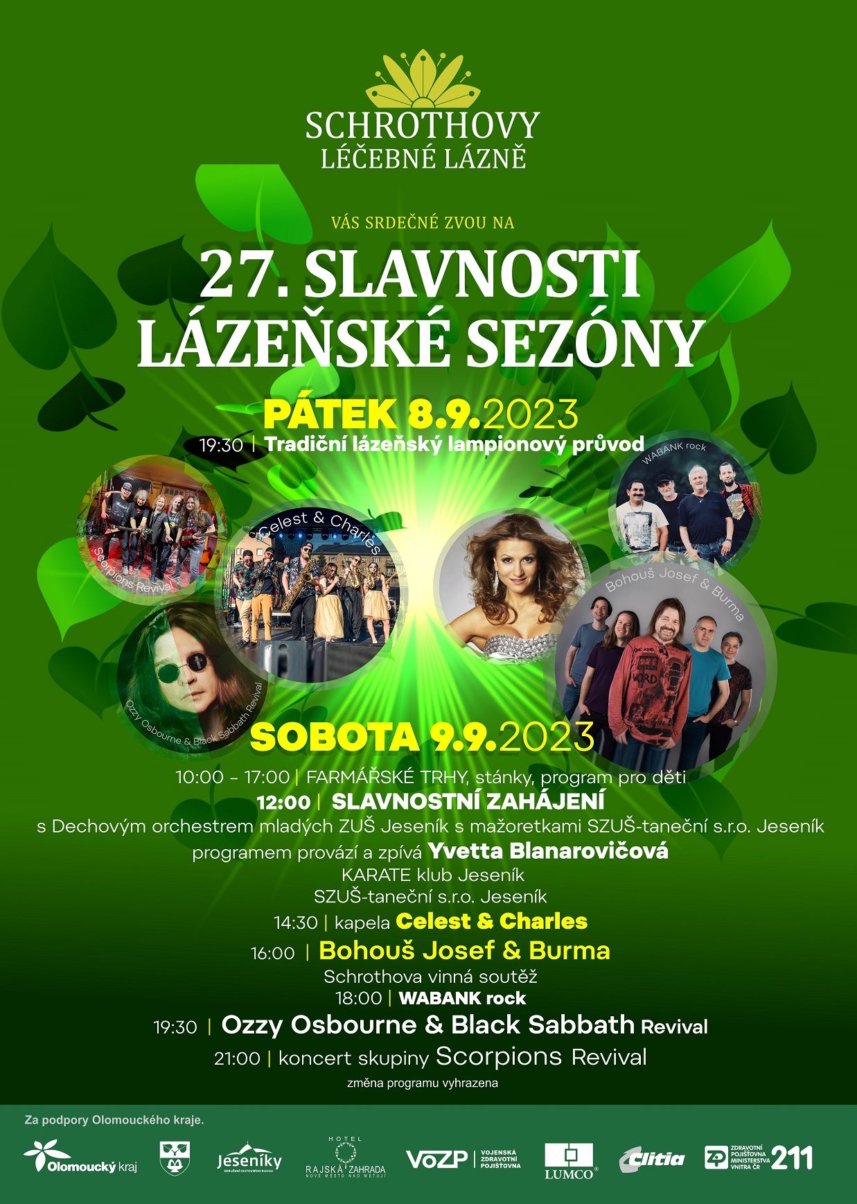 Schrothovy léčebné lázně Vás srdečně zvou 8 - 9.9. 2023 na 27.Slavnosti lázeňské sezóny. Celý program si můžete prohlédnout na přiloženém plakátu.