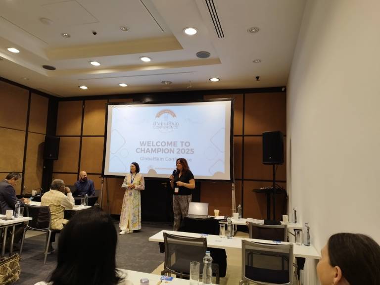 Tématem konference pro rok 2025 bylo „Šampion“ s cílem inspirovat, propojit a oslavit naši Komunitu šampionů, tj. všechny přidružené organizace jsou za šampiony. Před vlastní konferencí, která začínala až uvítací večeří ve čtvrtek, bylo tzv. před-konferenční fórum, zaměřené na atopickou dermatitidu (AD). Tato před-konference začala již ve středu 23. dubna odpoledne (za účasti pacientských skupin s AD a farmaceutických společností, celkem asi 30 delegátů) dvěma pracovními schůzkami, každá trvala skoro dvě hodiny. Skončili jsme diskuzí u pracovní večeře po 20. hodině. Taktéž celý čtvrtek, až do 16hodin, jsme opět jednali jenom o AD.