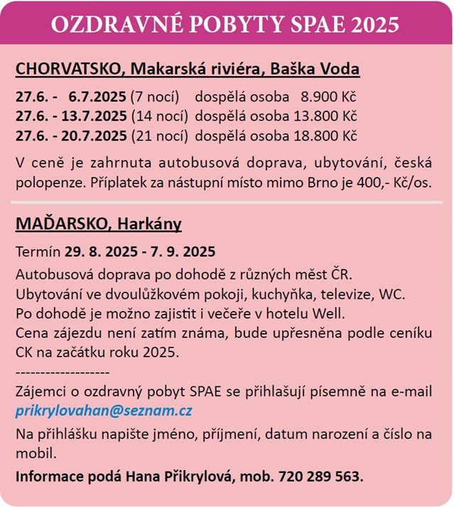 Ozdravné pobyty SPAE na rok 2025.