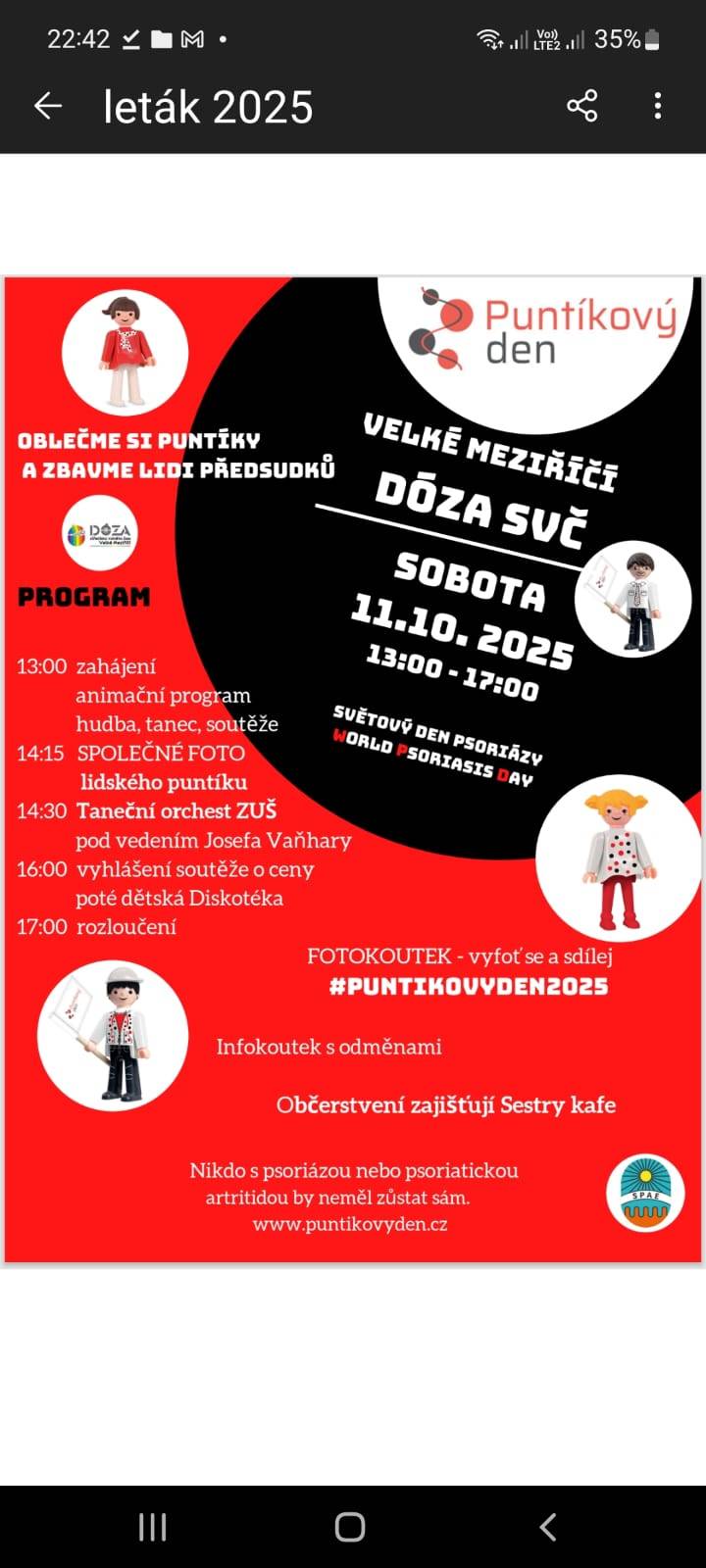 Puntíkový den ve Velkém Meziříčí se uskuteční 11.10. 2025 ve středisku volného času - Dóza.